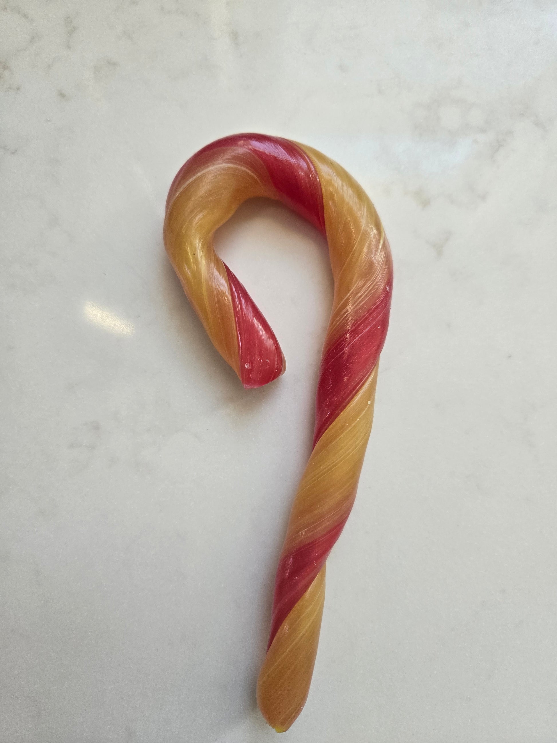 We only make hand made candy canes for Christmas. This is our very first year selling candy canes so they will be perfectly imperfect as we are still figuring out how to get that swirl. But that's how you know our dye free candy is hand colored, hand pulled and hand cut. These are special boxes of 5 packs with large candy canes. Each box contains 5 flavors made fresh this month for the Holiday season. We have blue raspberry, sweet red swirl, green apple, yellow mango, and rainbow candy canes. Each cane is a large 2-3 oz size, and each box is almost a full pound of candy!